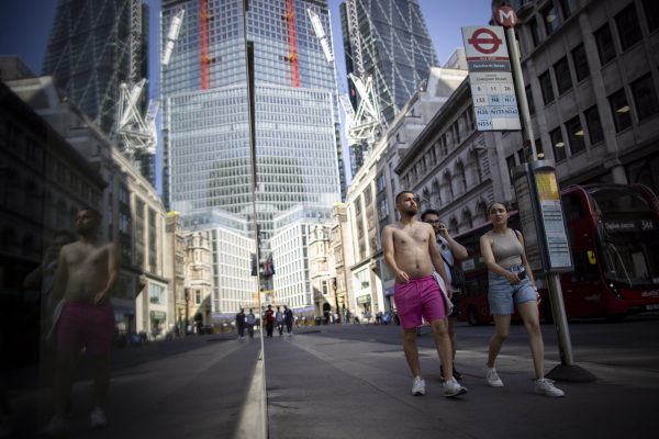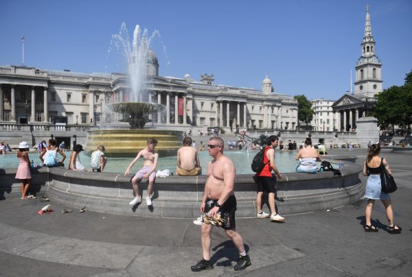 刚刚过去的周一晚上,是有记录以来最热的一个晚上,据气象局的数据,一些地方的温度都不低于25度。在经历彻夜难眠的一夜后,许多人走到户外试著消暑。在伦敦市中心,特拉法加广场有民众将脚泡在喷泉,海德公园蛇形湖有人大排长龙等候下水游泳。