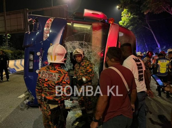 (吉隆坡21日讯)一辆从霹雳怡保出发的双层巴士疑在行驶途中突然失控侧翻,所幸未酿成死亡事故,车内26名司机和乘客饱受惊吓,当中有3人因伤势较为严重而必须入院接受治疗。