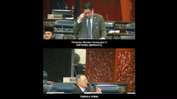 财政部副部长雅马尼哈菲兹为2022年关税修正案进行二读总结时,回应国会议员的提问,锺少云在提出附加提问时没有起身,而是继续坐着与副部长对话。