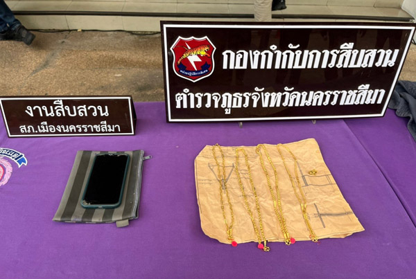 在蓬贴供认后,警方就带着他到木薯地搜索赃物,最后把5条金项鍊全部归还金行。(泰国世界日报)