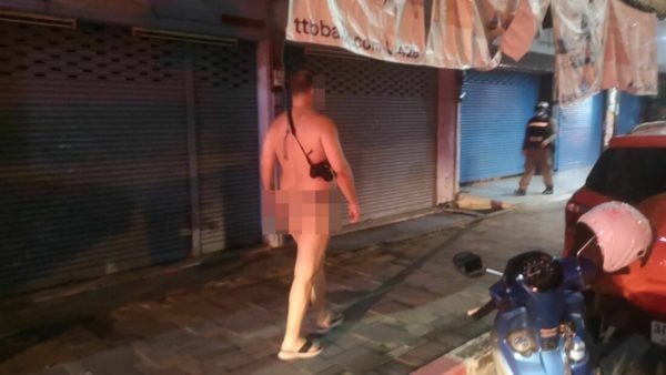 警方在现场看到有很多流浪汉走来走去,一名身材魁梧的欧洲男子,光身裸体沿着南芭堤雅路走,身上背着一部相机,腰间挎着一个腰包,给行人带来很大的困扰。