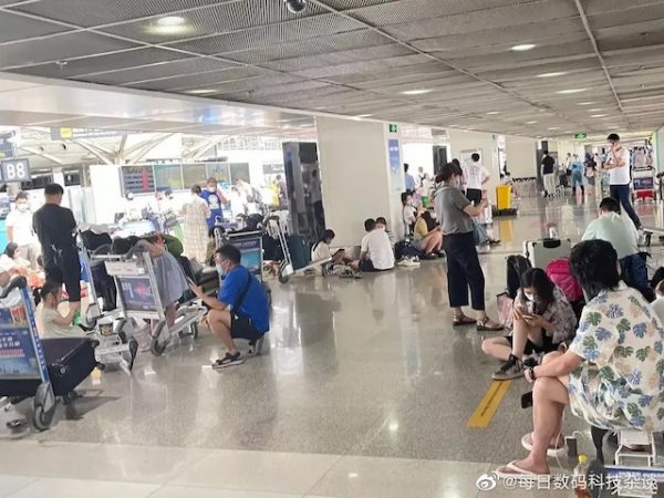 网上流传多段影片显示,有大批旅客被困机场,有不少人围着柜枱,同身着防护服者或机场地勤人员交涉。有大批警察赶至戒备。