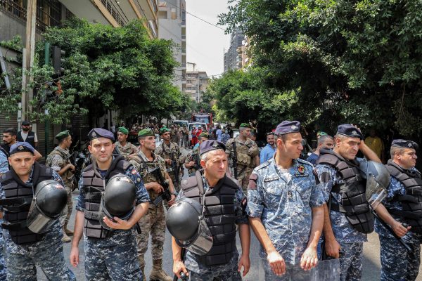 据记者所见,黎巴嫩联邦银行在贝鲁特西区哈姆拉商业街的分行,已遭军队及安全部队包围守卫(图)。