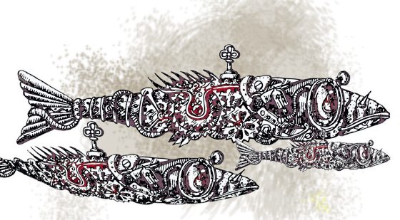 鱼肚鼓鼓的,里头到底藏着什么呢?孩子们围在鱼缸旁,一边看着畅游的鱼儿,一边将指头伸入水里调戏慌不择路的孔雀鱼。大伙儿都把注意力放在了孔雀鱼五彩缤纷的尾巴上,阿丽却觉得那凸起来的腹部让整条鱼看起来格外地不协调,就像某条原本可以轻松藏匿在草丛间的蛇贪吃地吞下了整头大象,反而引人注目,最终被杀死。鱼若无其事地游着,但阿丽无法无视那凸起的鱼腹。片刻之后她终究忍不住,抓起了一条鱼,鱼在她的掌中翻腾挣扎,阿丽只稍稍一捏,鱼,便停止了动静。阿丽用指尖缓缓将挤出体外的红肉挪开,鱼腹终于不再凸起,留下流水弯般的残影,好像这才是鱼应有的原形。阿丽细细地端详着那团肉球,分不清那是心、肺还是腑,反正把东西抠了出来,鱼轻松了,她也轻松了。其他孩子却错愕不已。
