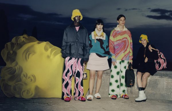 A先生一向颇受各大品牌青睐诚邀合作联乘,过往合作过的品牌无数,大众熟识和轻易入手的有UNIQLO的延年联乘,俘虏了万千的“迷”,曾经也慰藉了多少少男少女心事,爱你演变成为了习惯,能以affordable luxury的途径将之据为己有,不用再在背后暗中洒泪。近日三度和MONCLER GENIUS项目的1 MONCLER JW ANDERSON联乘名为《Dream In Color》系列,共同创作一个赏心悦目《缤纷的梦》,别注的系列透过鲜艳的色调,天真和近乎迷幻的图案,去表达“乐观逃避主义”的主题。在颇具实用性的廓形基础上,A先生大胆运用鲜艳色彩渲染近乎原始的图案元素如大小不一的喷绘波点、斑点和波浪线条,以印花或提花的形式呈现。套染技艺的运用带来了不均匀的外观效果,给予视觉和质感上的双重刺激。