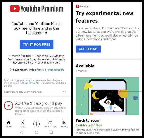 如果你是Premium订阅用户,可以到安卓版的YouTube应用上面,点击个人资料,接着点选“Your Premium benefits”和“Try new features”,就会看到这项功能。不过,“双指缩放”仍处于试验阶段,YouTube仅开放试用直至9月1日。官方并没有宣布是否会开放给免费会员,或将它变成订阅用户的专属功能,应该是想得到用户反馈后再决定要不要推出市场。
