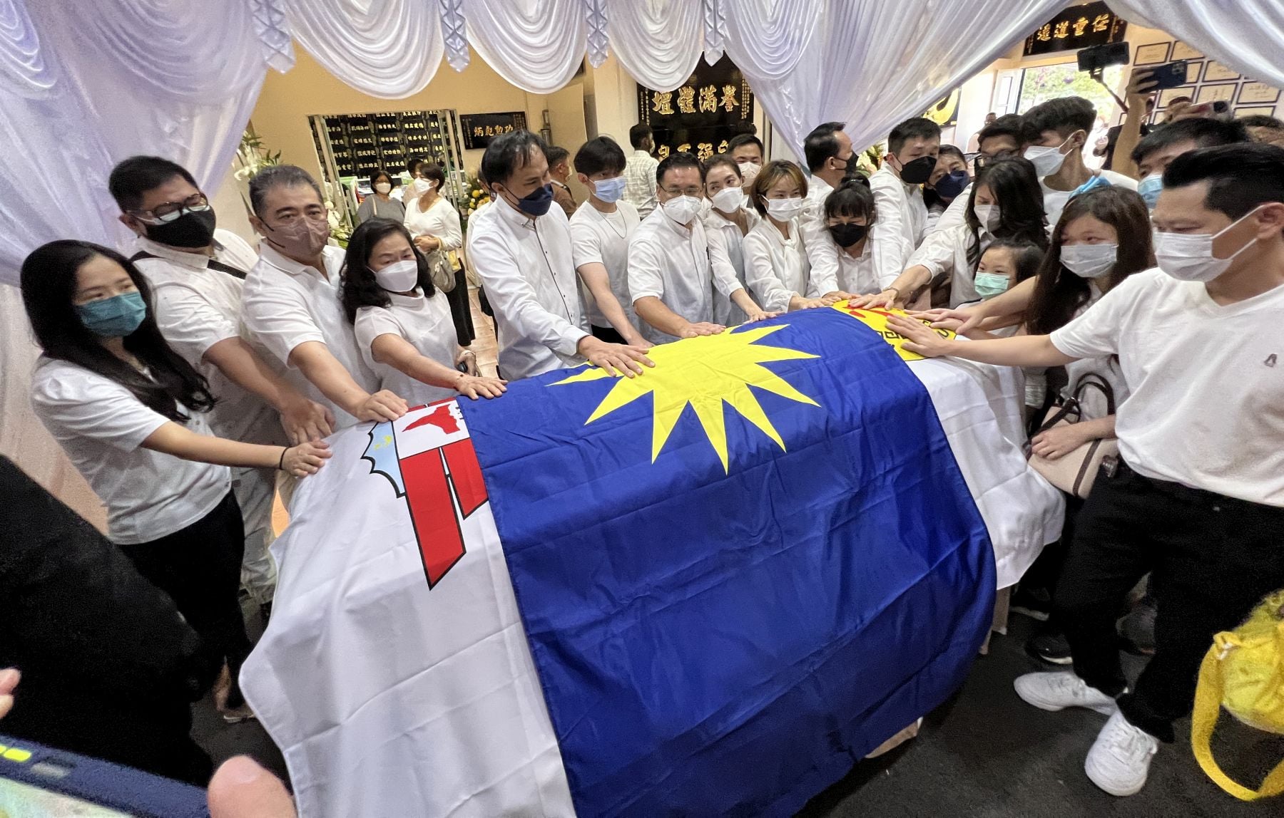 (马六甲19日讯)鸡场街文化坊创办人、马六甲政坛铁汉及体坛推手的“亚洲先生”拿督威拉颜文龙今日举殡,灵柩盖了马华党旗、马来西亚武术总会和马六甲武术龙狮总会会旗,以感谢颜文龙一生在各界的奉献与付出。