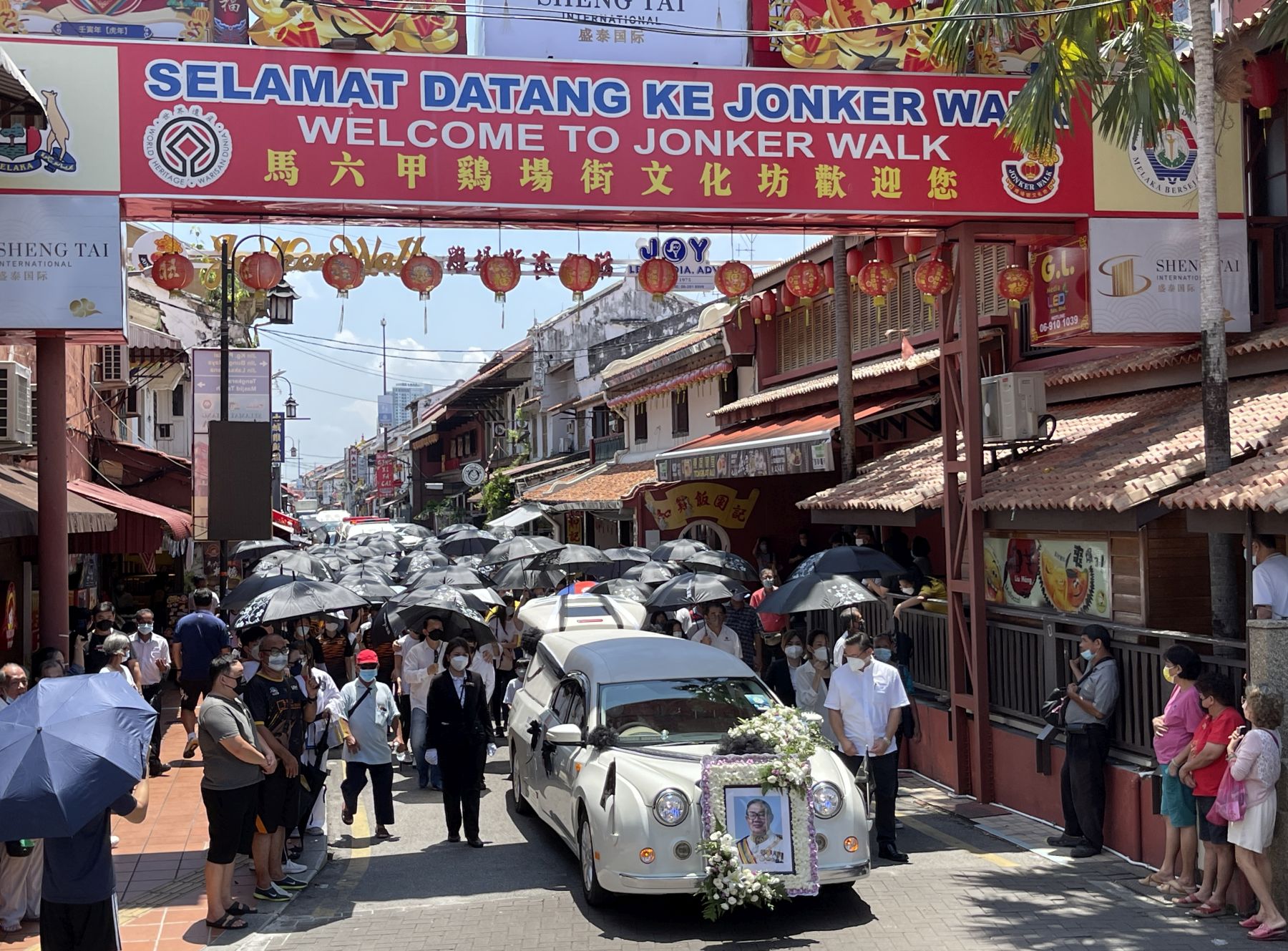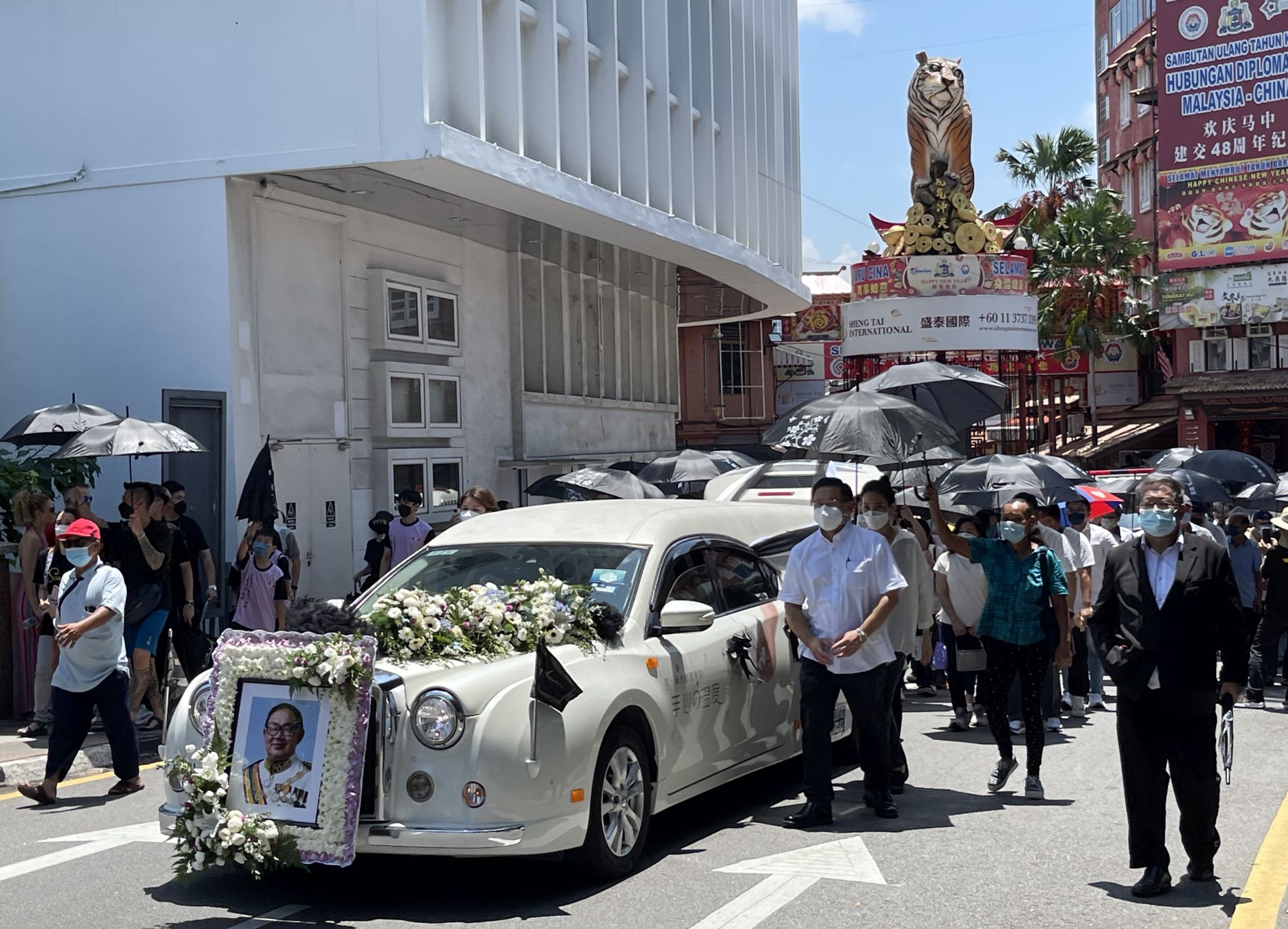 灵车于下午1时从丧府出发前往鸡场街文化坊,大奠旗在前,助丧队伍为武术龙狮队伍,沿途奏响哀鼓,民众和游客在旁给予最后的致敬;同时,灵车也在鸡场街舞台、世遗公园、福建会馆及“金虎”吉祥物前稍停。