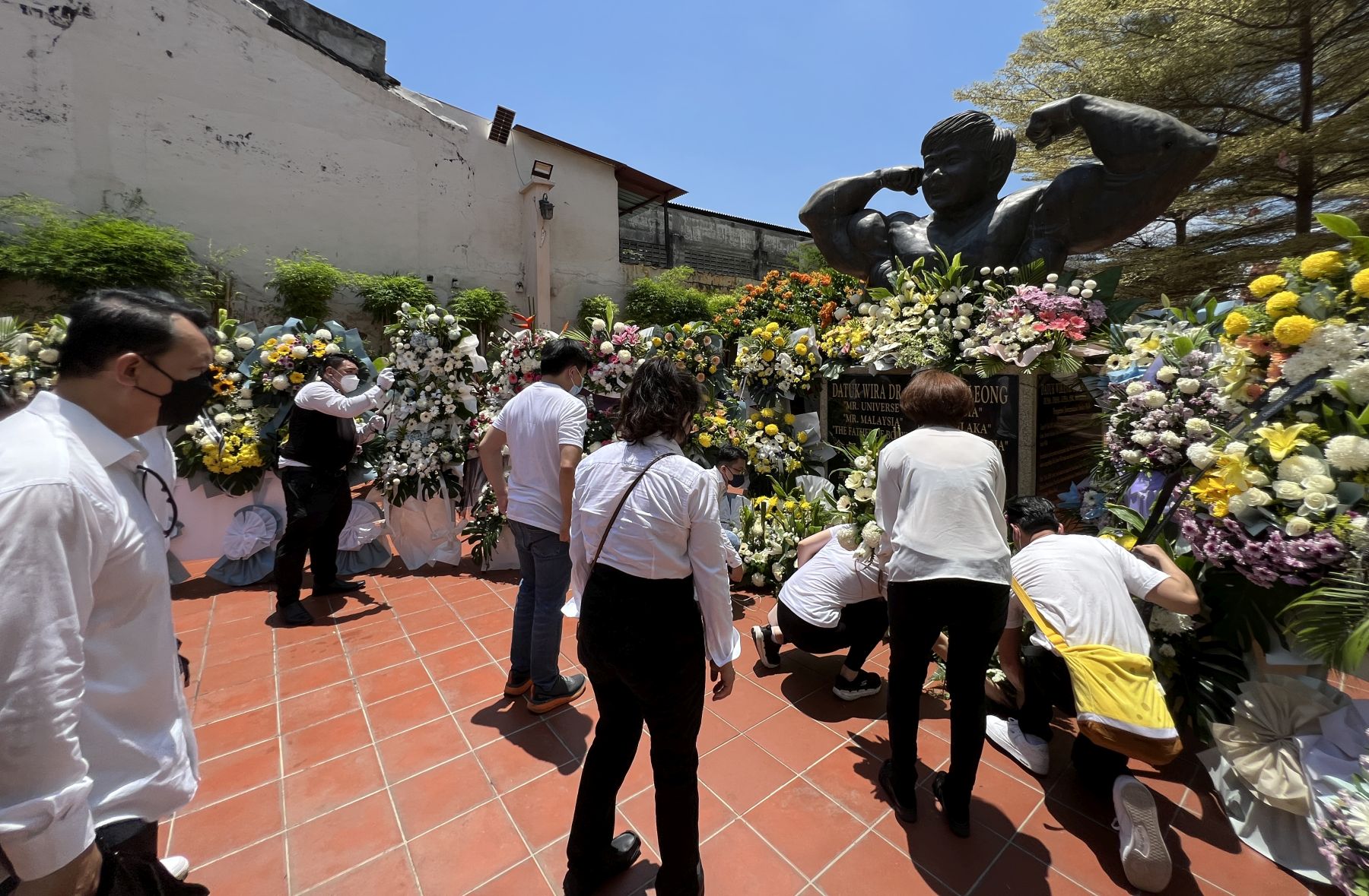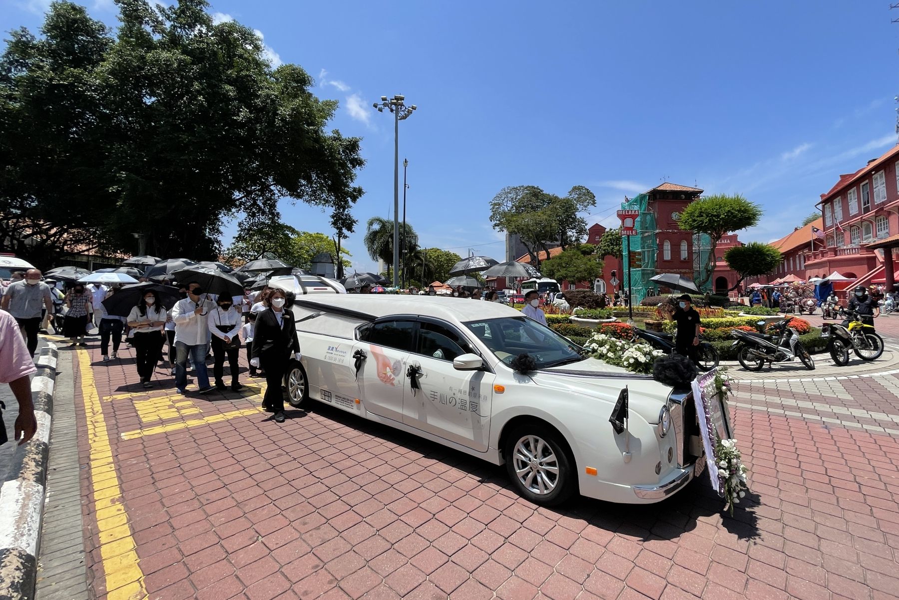 灵柩上的旗帜分别由马来西亚武术总会代表、马六甲武术龙狮总会代表及甲州马青队伍覆盖,而甲州武术队和国家武术队也在灵堂前助丧,接着由武术、龙狮、跆拳道和柔道代表扶柩举殡。