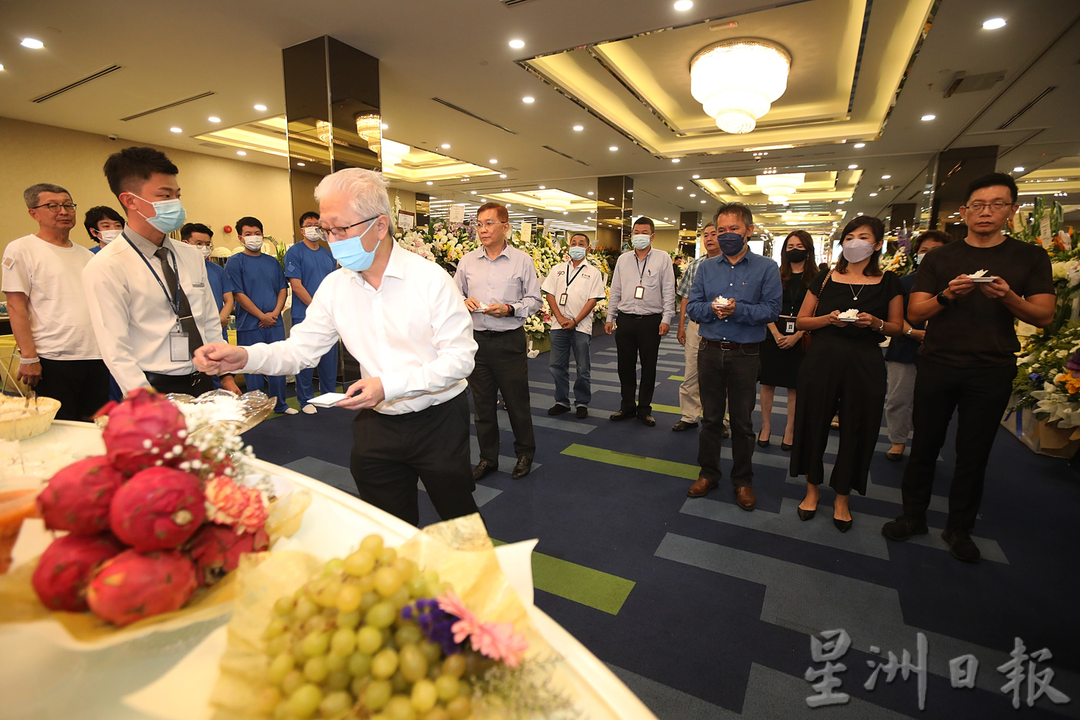 富贵集团创办人兼执行主席丹斯里邝汉光、中国驻马来西亚大使馆公使衔参赞马翠宏、教育部副部长拿督马汉顺、行动党蕉赖区国会议员陈国伟、武吉免登区国会议员方贵伦、雪州行政议员黄思汉、马华雪州前主席拿督林祥才、世华媒体(马来西亚)集团总编辑兼星洲日报总编辑郭清江、星洲媒体集团执行董事兼星洲日报首席执行员许春、星洲日报企业公关及业务部总经理陈金泉、巴生滨海、乌雪及乌冷区高级经理郭富广、中国报总编缉张映坤、南洋商报总编辑罗依薇等人也到灵堂前致敬献花。