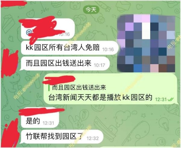 有关传闻于前天开始在一个由诈骗分子设立的Telegram群组上流传;对话讯息截屏称KK园区内的所有台湾人,将可以在免于赔付的情况下,由诈骗集团出钱送出园区,并称这是竹联帮联系园区的结果。