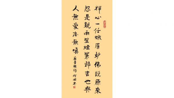 “禅心一任蛾眉妒,佛说原来怨是亲。雨笠烟蓑归去也,与人无爱亦无嗔。”