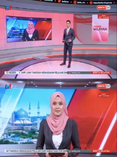 RTM新闻的女主播兼记者珊夏山希(Samsia Samsi)昨日在TikTok上传了她与丈夫纳兹里(Nazrie Fahmie)在电视新闻中“同框”的视频,笑称丈夫一时紧张,连她的名字都叫错。