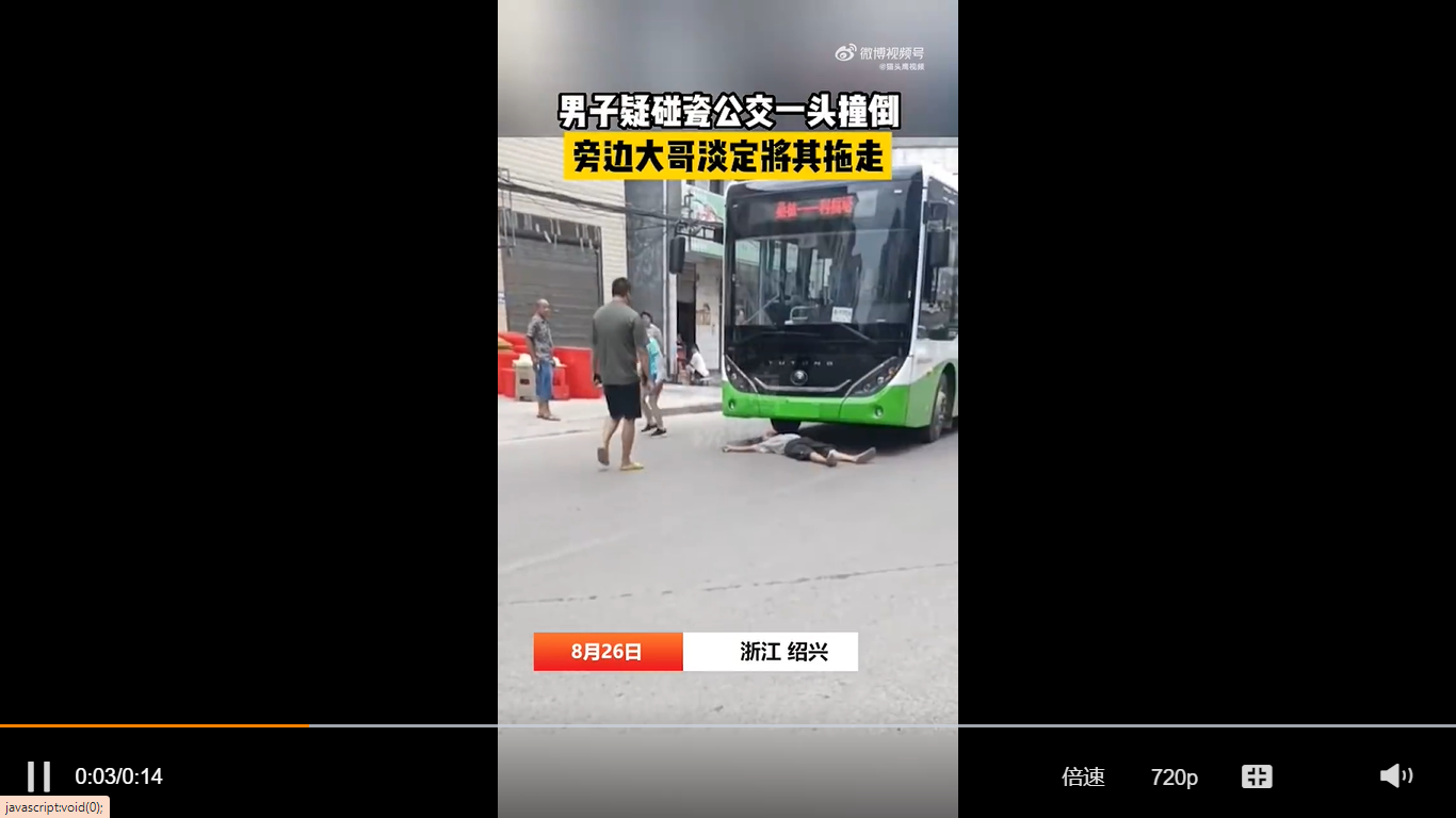 视频 | 男子疑碰瓷巴士 路人淡定拖走他