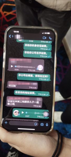 “随后有一个陌生人使用泰国手机号码,透过WhatsApp将我加进一个群组,邀请我到泰国与儿子一起打工,但对方却不愿透露儿子工作相关事宜。”