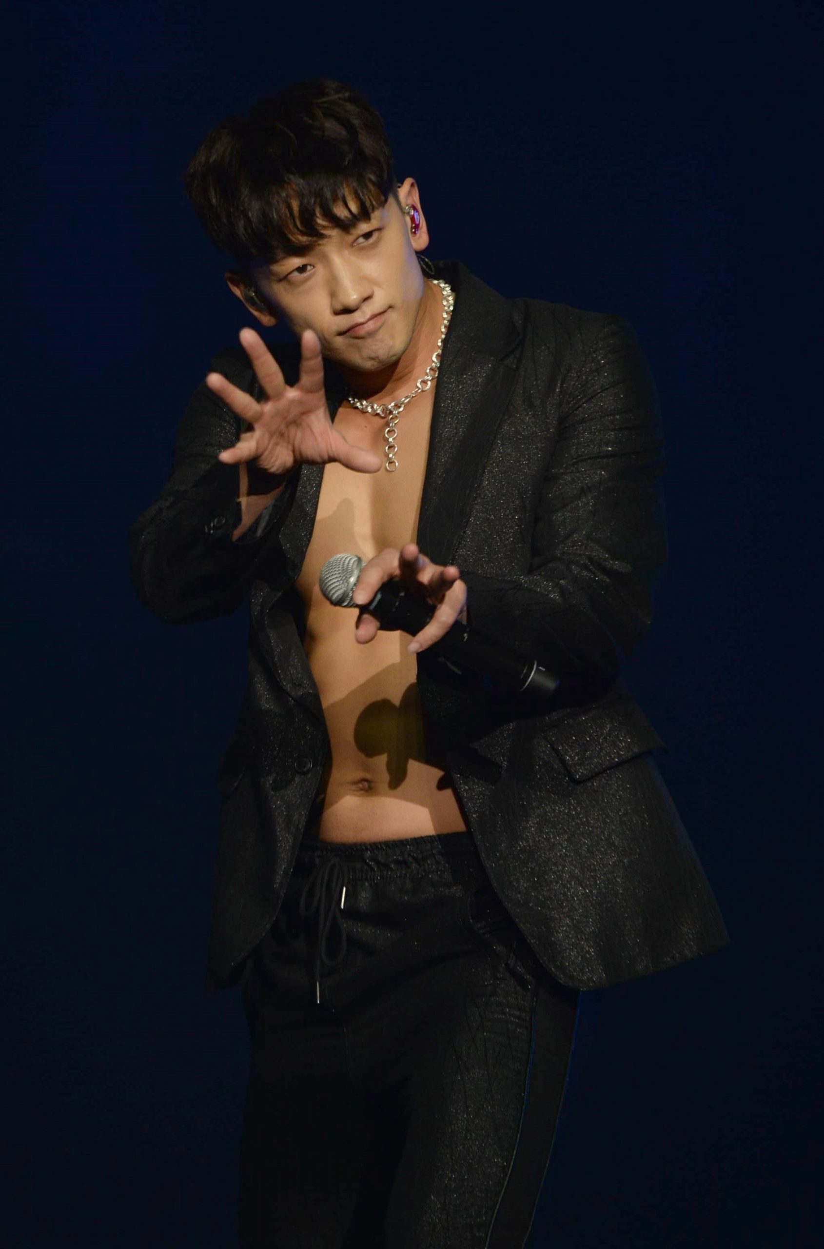 由大马保投乐(Betadia)主办的《Betadia Night》,邀来韩国天王Rain及两位大马实力唱将李佳薇及陈势安于亚通体育馆助阵开唱,并由Rain打头阵,一口气带来5首歌曲,连串劲歌热舞,气氛沸腾,让粉丝high翻,喊破喉咙。尤其在黑色西装外套底下的精练身材,若隐若现,搭上精湛舞艺,让全场醉倒在他的舞台魅力中。或许是被现场粉丝的热情感染,让Rain愈唱愈high,左手一捉,就扯开外套的钮扣,露出冰块格腹肌和精壮胸肌,惹来全场尖叫。