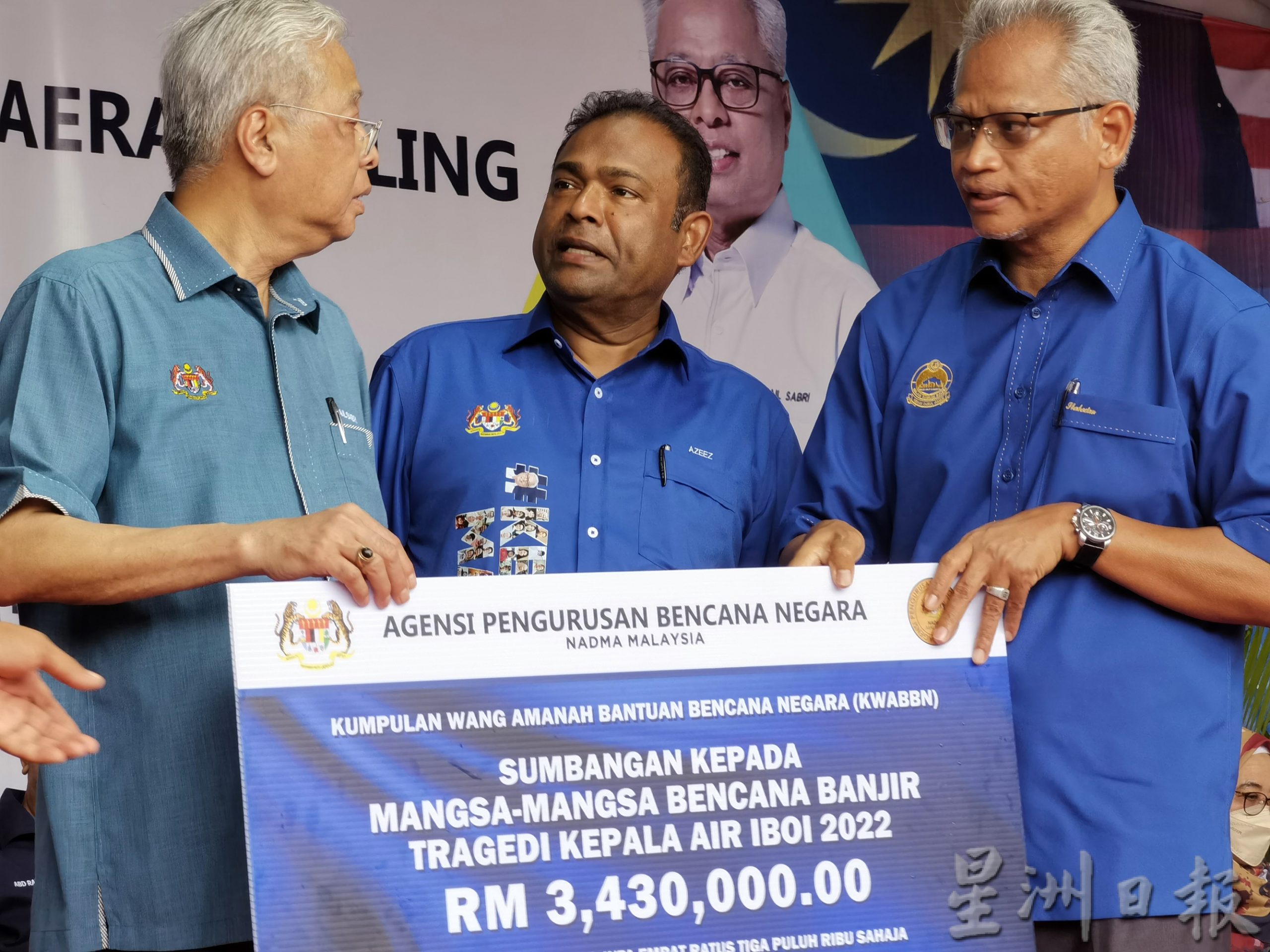 他宣布额外拨出各2500令吉给上述1012户受灾家庭,这项拨款今日直接交到灾民手中。这两项拨款总额为360万令吉。