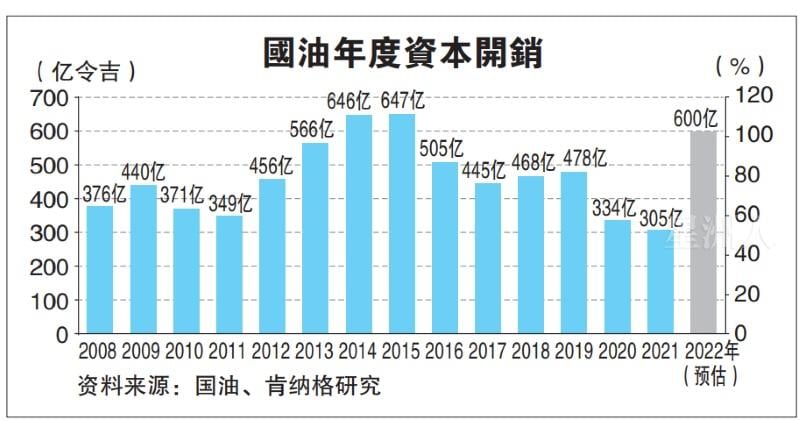 另一方面,国油2022财政年上半年资本开销近190亿令吉,该行指出,除了胜过去年同期的130亿令吉,同时也超过2019财政年上半年的160亿令吉,实现今年资本开销重返疫情前水平的目标。