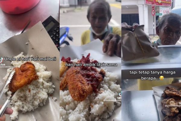 小贩说,这名老人因妻子喜欢炸鸡椰浆饭而长期光顾同一家小贩,但小贩说,他每一回都会询问小贩食物的价格。