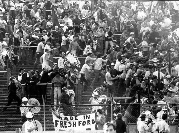 “摩德族”(mods)、“光头党”(skinheads)这些英格兰的足球“帮派”(gangs)与“行帮”(firms)席卷整个欧陆,形成失控的球迷文化。暴力问题在1980年代达到高潮,并于1985年5月29日在比利时布鲁塞尔海塞尔球场制造了人间地狱。