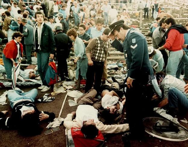 在那场万众期待的欧冠决赛开踢前,聚集在X看台的狂热利物浦球迷趁着酒兴向Z看台的尤文图斯球迷发动攻势,年久失修的看台砖墙不堪重负倒下,最终压死39人,数百人受伤。在狂乱的氛围里,欧洲足联以担忧取消球赛会使暴力加剧为由,继续比赛,镇暴队全副武装在球迷制造的狼烟里迷茫,当法国传奇球星普拉蒂尼(Platini,1955-)为尤文图斯射入致胜的争议点球,被压死的球迷仍尸骨未寒。