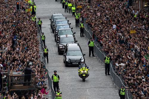 经过6小时、290公里的车程,女王的灵柩于当地时间星期日下午(大马时间11日深夜)抵达爱丁堡。进入爱丁堡时,有仪仗队迎接,斯特金率领官员和政党领袖目送灵柩送进荷里路德宫停放。