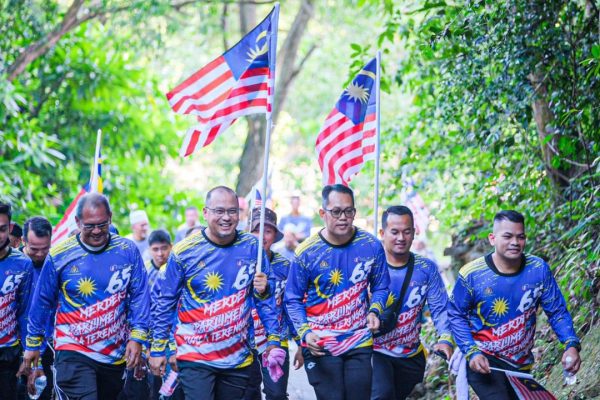 也是瓜登国会议员的阿末安赞在今早7时出席登州新闻局举办的瓜登国会选区国庆日活动“2022征服武吉勿刹”,他为参与者主持挥旗礼后,与大家一起徒步走上海拔156公尺的武吉勿刹(Bukit Besar)。