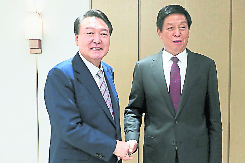 栗战书周四晚抵达韩国,展开3天访问行程,是时隔7年再有全国人大委员长访韩。他周五到首尔龙山总统府与韩国总统尹锡悦会面,尹锡悦表示希望两国共同利益不断扩大。
