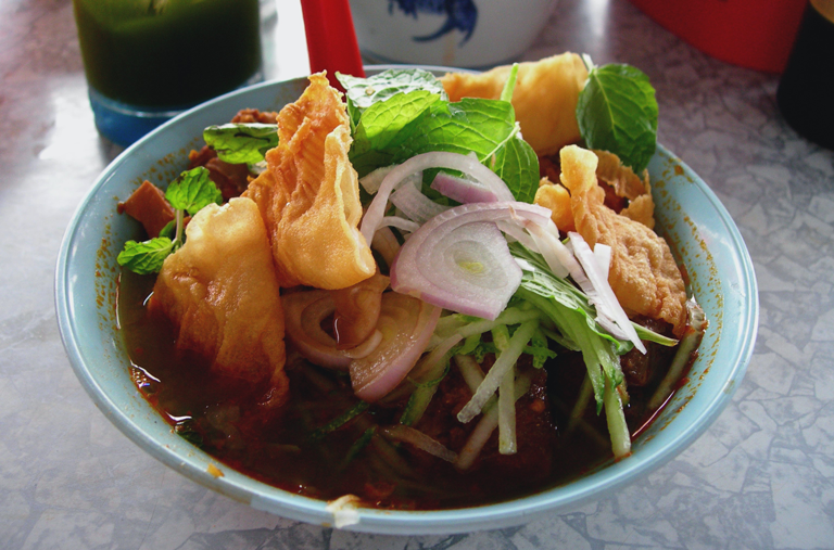 对南洋历史及其饮食文化有所涉猎的朋友,或有听闻Laksa一辞源自古印度梵文Laksha,意思就是“千计无数”。综观东南亚一带曾在一千几百年前深受古印度文化影响的地区,像印尼的峇厘岛、泰国南部的克拉地峡一带、缅甸、北马数州、柔佛,甚至东海岸的吉兰丹、登嘉楼,在该地饮食文化的语彙词藻中,都留有Laksa一词及其衍生而出的名称,像Laksam、Laksan、Lakso等等,都隐隐约约情牵着这远久历史的馀韵。