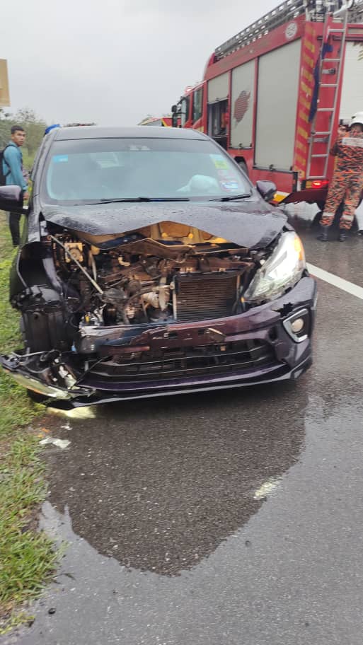 (居銮18日讯)雨天行驶中的车辆因路面积水失控打转引发连环车祸,一家四口魂断南北大道。