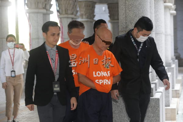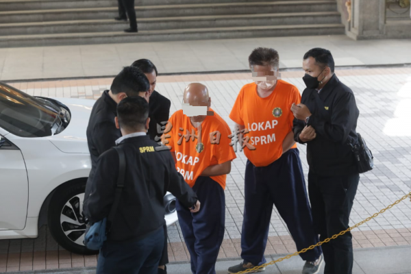 这两名嫌犯是于今早9时56分左右,被反贪会官员押往布城推事庭申请延扣。
