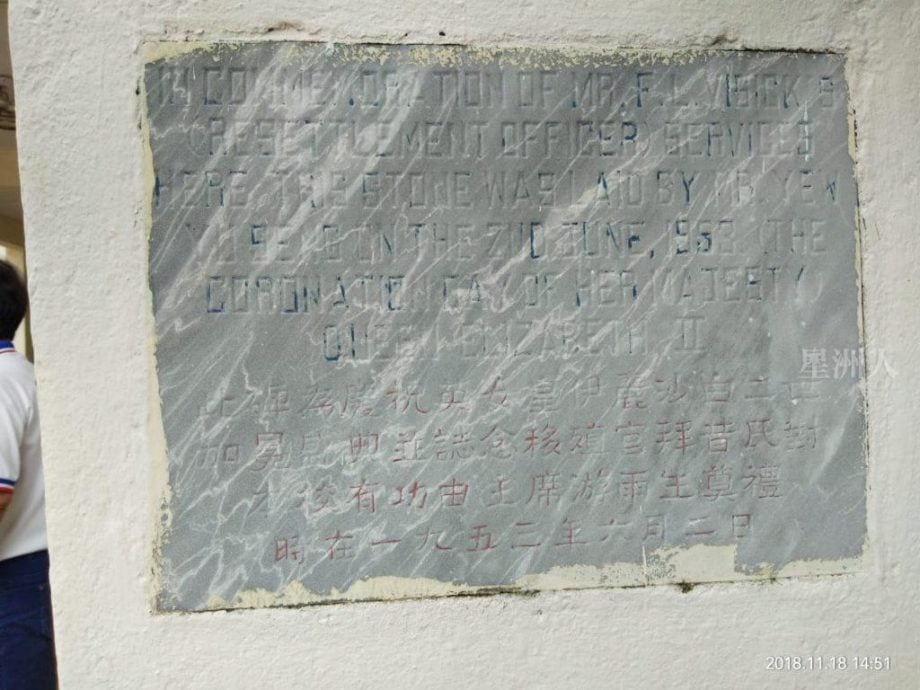 今年9月初,英女王伊丽莎白二世驾崩,享耆寿96岁。划着手机,不经意瞧见边佳兰友人孙老师在面子书上发布照片,所拍对象是嵌在四湾岛育本学校旧礼堂拱门上的英女王加冕日纪念碑,遂想起我还欠边佳兰的朋友一个解答,顺势便来谈一谈这碑铭里究竟说了什么。