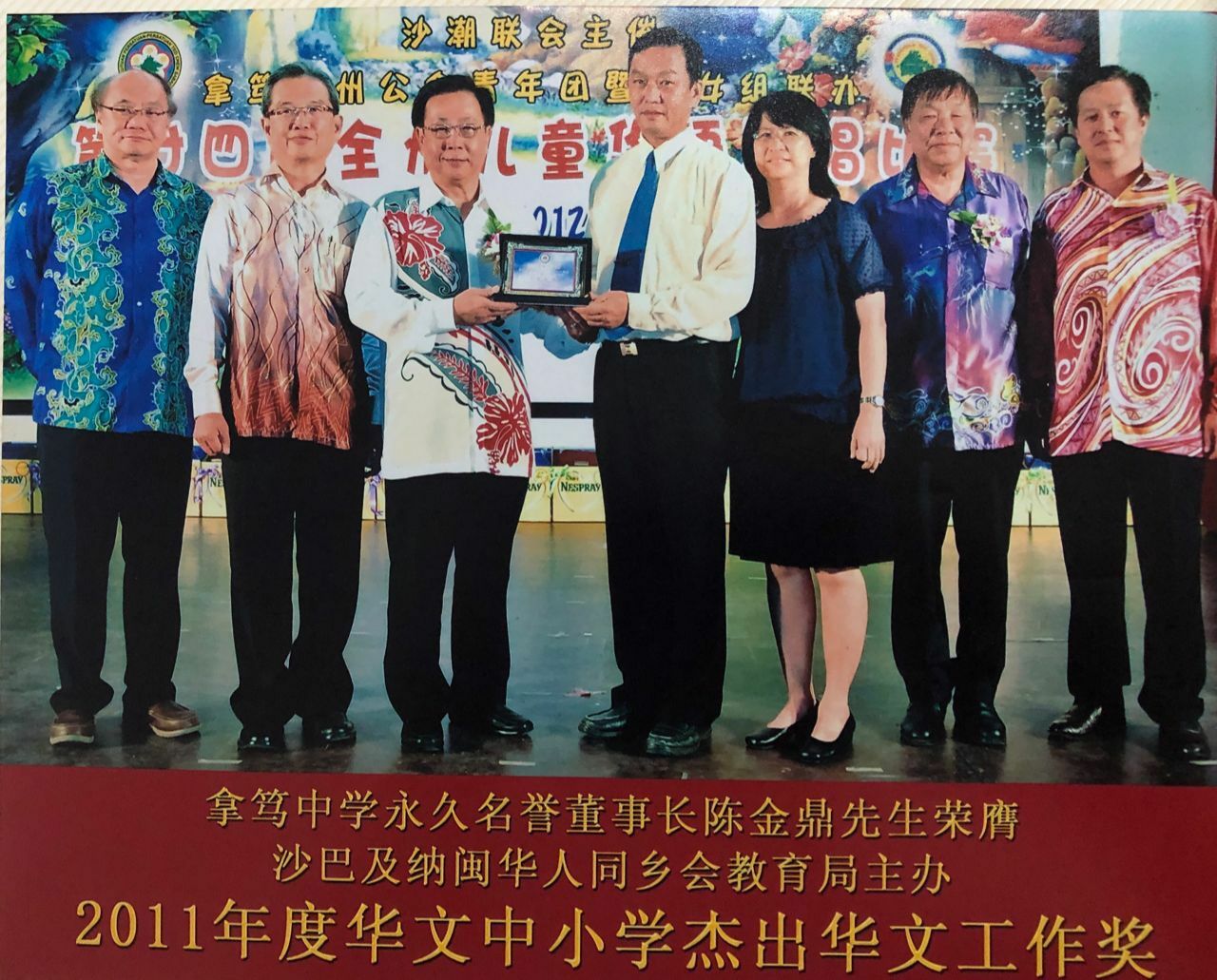 于2011年获颁华文中小学杰出华文工作奖(沙巴及纳闽华人同乡会教育局主办)