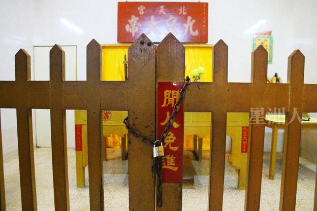 路旁的神庙也会插满黄旗,好比今日到访的增江南区北天宫,早在几个星期前就清洗了宫内、宫外,甚至在农历八月二十六日进行封殿仪式,除了内殿人员,任何人皆不能进入内殿,直至初一才会重新开放让善信入殿进香!