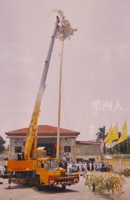 增江南区北天宫是雪隆地区享誉盛名的九皇庙,1965年建庙至今已走过半个世纪。农历八月三十这一天,也称作九皇爷宝诞除夕,所有理事全员出动参与立篙灯仪式,道长法师在一旁诵经布法行礼拜祭,起重机慢慢地将篙灯柱竖立。