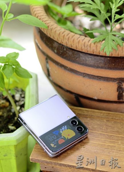 我个人是偏爱Galaxy Z Flip系列,因为上下折叠有一种仪式感……难道你不觉得翻开手机特别有型吗?Galaxy Z Flip4是一款上下内折的手机,而其中一大卖点是折叠模式(Flex Mode),可以多角度旋停。我最常用“倒V型”或“L型”,周末到咖啡馆打卡或出游,一个人也能自拍美照,不用假手于人。