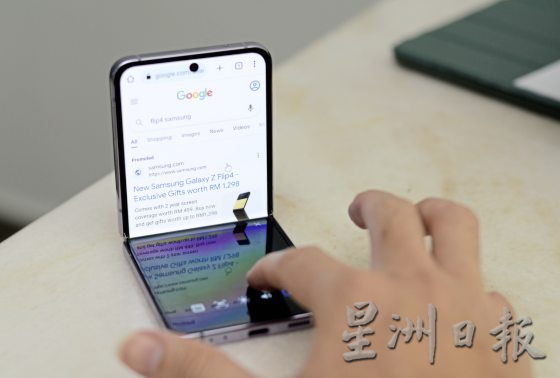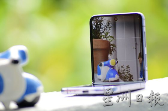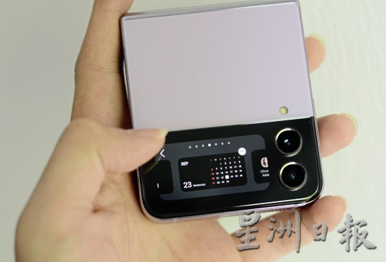 当你打开手机之后,内屏是一个6.7吋的FHD+ Dynamic AMOLED 2X屏幕,拥有22:9的比例、2640×1080分辨率和支持120Hz刷新率。由于是一个修长的屏幕,当你刷脸书、抖音、小红书可以看到更多内容。折叠起来之后,能够通过1.9吋的Super AMOLED外屏操作一些简单功能,比如查看时间、日期、天气和电邮通知。