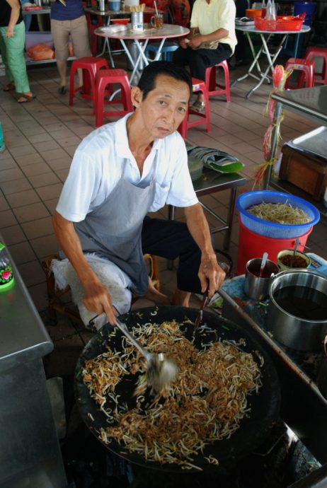 那天在麻坡认识一位从事饮食业的朋友,说家乡在太平,竟记起我一年前写过的一篇〈大叶婆炒包粿条〉;深入描述,连我也淡忘的文中情节。其中便提到太平早年沿街炒粿条的小贩,由于挑担摆卖缘故,所以都坐在小矮凳上炒粉,炭炉铁锅摆在地上,夜里成排蹲坐,蔚为奇观。