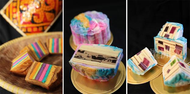 仔细瞧,人潮里什么种族都有,美食摊位贩卖各族美食或小吃。中秋节传统月饼之外,还有将砂拉越的特产——千层糕与月饼结合的“千层糕月饼”、“千层糕冰皮月饼”。月饼外形与传统无异,不过一旦切开月饼,就会看见色彩斑斓的千层糕图案,煞是美丽。