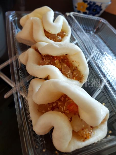 “诏安和合包!我每一年都要特地到古晋节买来吃,因为其他地方找不到,也很少人会做了。”沈淑梅的爸爸是诏安人,和合包、黑龟糕、烟熏鸭或三层肉都是她记忆里的传统料理。爱到处找美食的她,唯有和合包只能在古晋节里找得到。