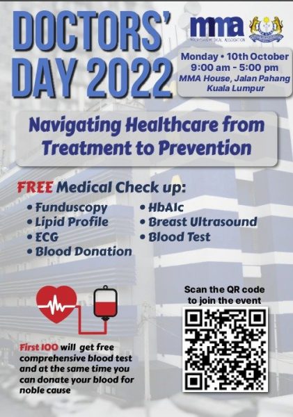 (吉隆坡9日讯)配合我国医生节,大马医药协会(MMA)决定于明日(10月10日)开放总部让民众进行免费体检。