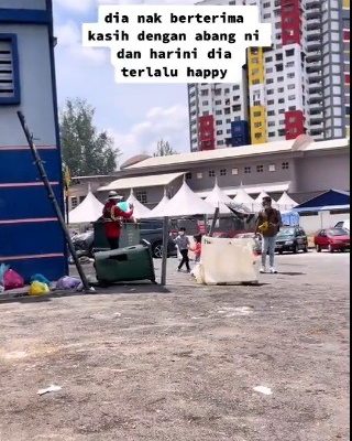 今天是周三,该父亲带著一对子女外出回家,经过垃圾房时偶遇该名外籍员工在清理垃圾,于是提出要让孩子跟对方拍照的意愿。