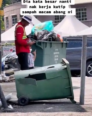 (八打灵再也12日讯)“我长大后也要当收集垃圾的工人。”