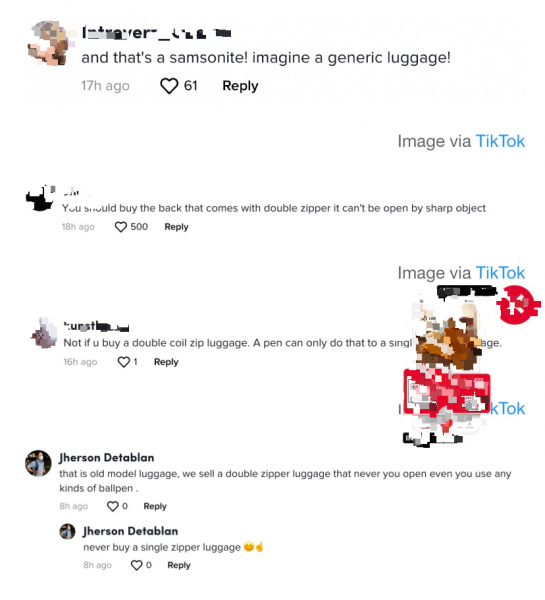 一名网民指出,视频中所看到的行李箱是属于比较旧的行李箱款式,因此会有瑕疵;因此,建议买双层拉链而不是单层拉链的行李箱。