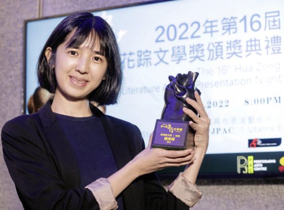 第16届花踪文学奖马华散文首奖陈秀莉,获奖金1万令吉,及“花踪”铜雕一座