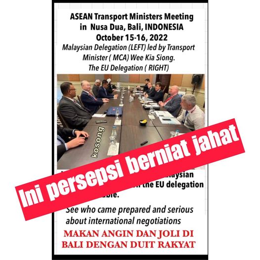 魏家祥今日在脸书上传大马代表团与欧盟交通与运输总局(MOVE)代表进行会议的照片,并指责社交媒体流传嘲讽交通部开会没带资料都是希盟故意误导民众的行为。