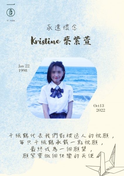 另外,死者一名不愿具名的朋友受访时指出,她将会出席折千纸鹤活动,希望为蔡紫萱与家人送上祝福。