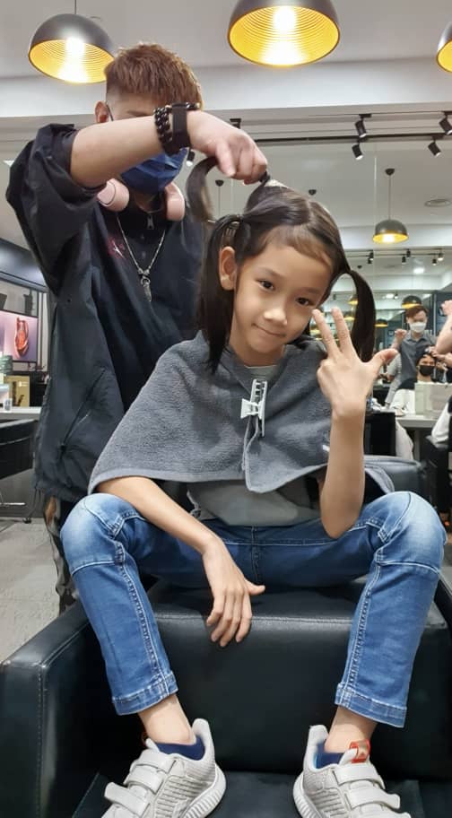 蓄发2年后,叶逢仪跟外孙在同一天剪掉长发。