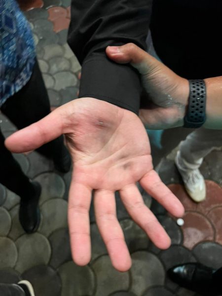 一党员手部遭爆竹灼伤
