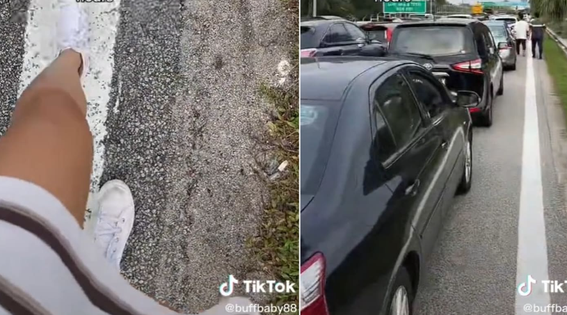 来自狮城的这名女子上周六(22日)在TikTok上传视频,表示她趁屠妖节长周末到大马旅游,却被困在大士关卡车龙中长达五个小时。